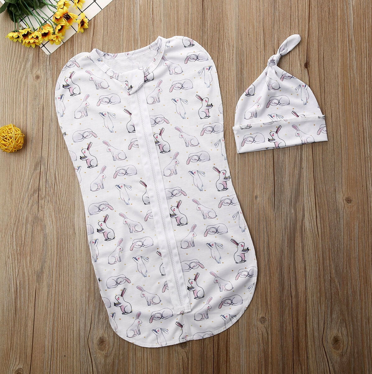2pcs Newborn Baby Cotton Zipper Swaddle Blanket Wrap Sleeping Bag Sleepsacks Hat 0 6m Walmart Com